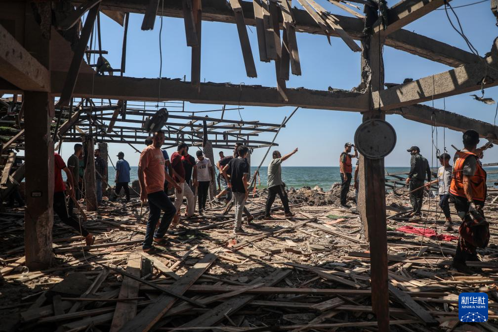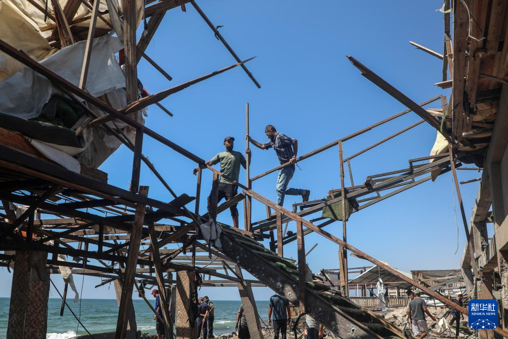 6月30日,人们在加沙城沿海地区查看遭袭的咖啡馆。