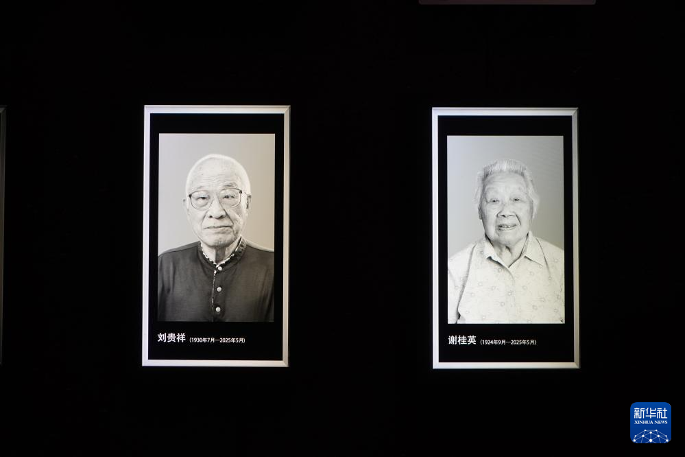 这是侵华日军南京大屠杀遇难同胞纪念馆内大屠杀幸存者照片墙上刘贵祥(左)、谢桂英(右)的照片灯箱(7月2日摄)。