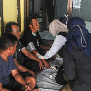 7月3日,在印尼东爪哇省的吉打邦港,工作人员检查幸存者的情况。