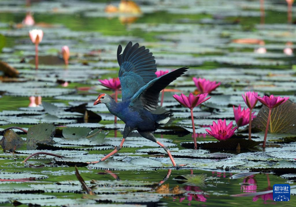 这是6月28日在斯里兰卡科伦坡郊区拍摄的紫水鸡。