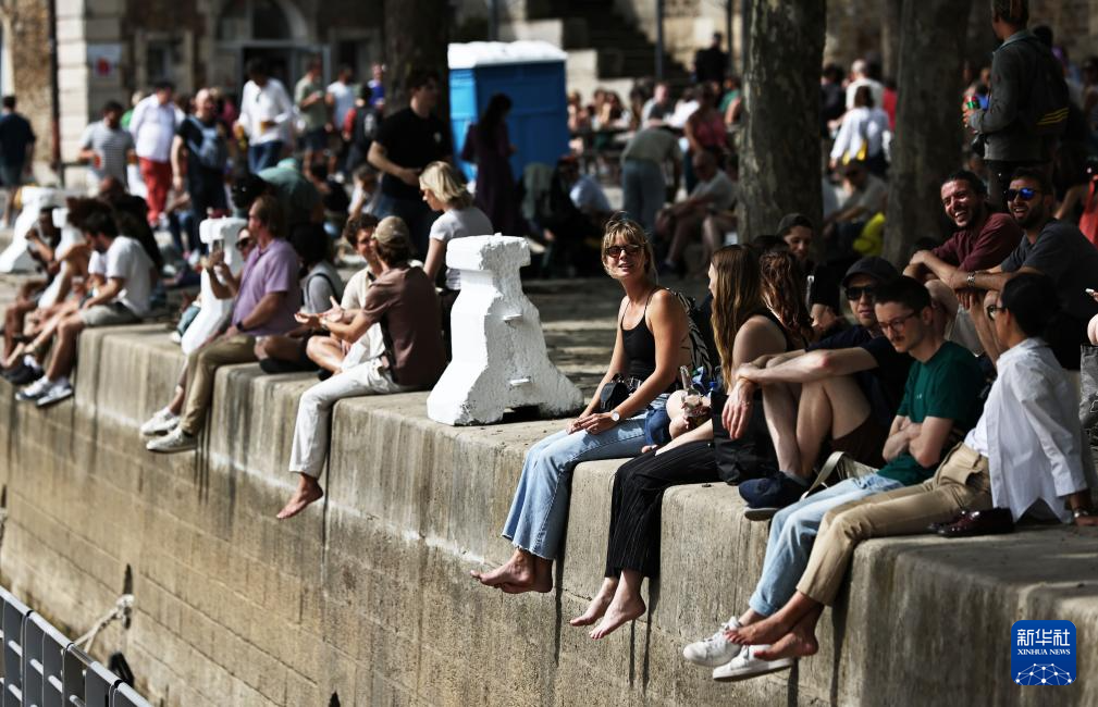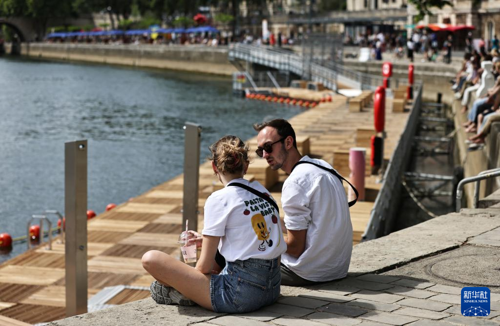 7月5日,人们在法国巴黎塞纳河边消暑休闲。由于当时是非游泳时段,公共游泳区域暂时关闭。