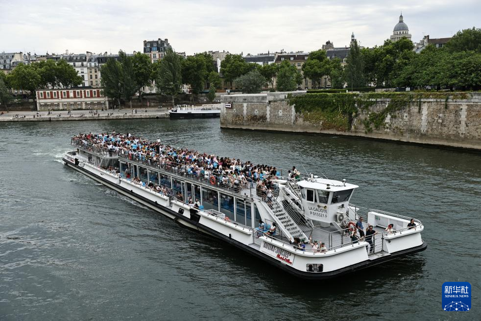 7月5日,人们在法国巴黎塞纳河上乘坐游船。