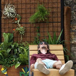 7月5日,一名男子在法国巴黎塞纳河边消暑休闲。