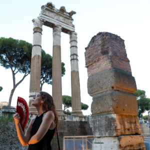 7月5日傍晚,在意大利罗马,游客在古罗马广场参观。