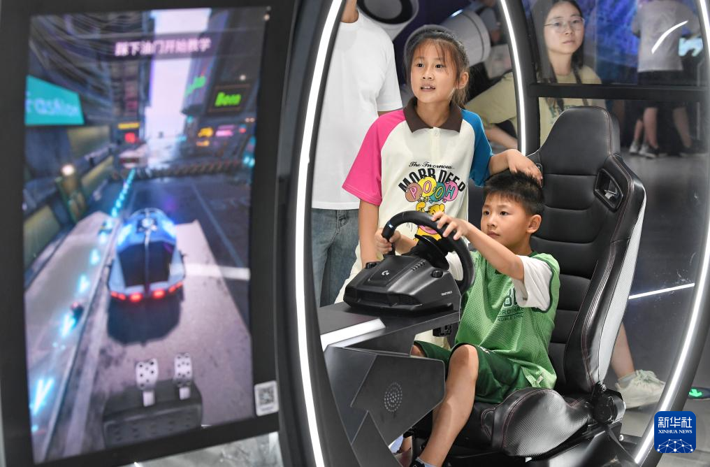7月6日,青少年在安徽省科学技术馆体验新能源赛车。