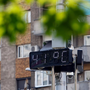 7月8日,罗马尼亚首都布加勒斯特街头的温度计显示气温达到41摄氏度。