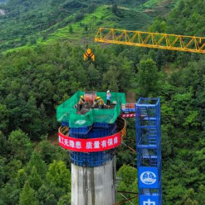 六志河特大桥位于贵州省安顺市镇宁县本寨镇,全长1185.3米,是黄百铁路贵州段的重难点工程。大桥共设30个墩台,最高墩达117米。