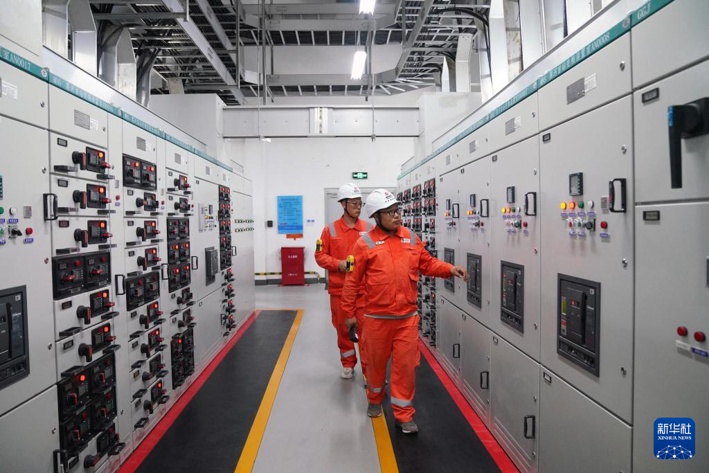 在“北气南下”能源大通道黑河首站配电间,综合维修工人在检查设备供电状态(7月9日摄)。
