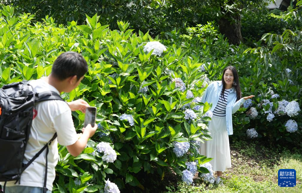 7月11日,游客在大理白族自治州漾濞彝族自治县光明村赏花拍照。