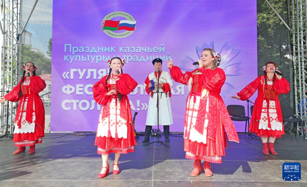 7月11日,演员在白俄罗斯北部城市维捷布斯克举行的“斯拉夫巴扎”国际艺术节上演唱民族歌曲。