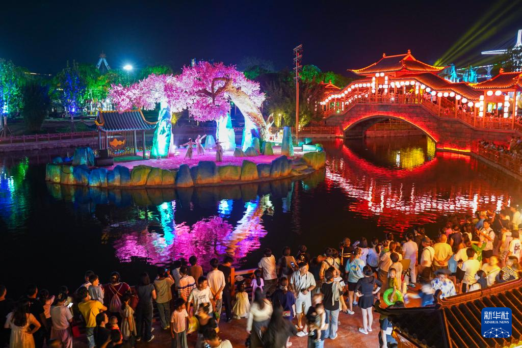 7月4日,游客在浙江省湖州市安吉县奇幻嘉乐比景区欣赏夜景。