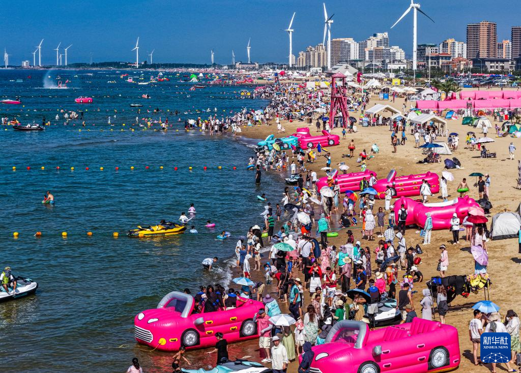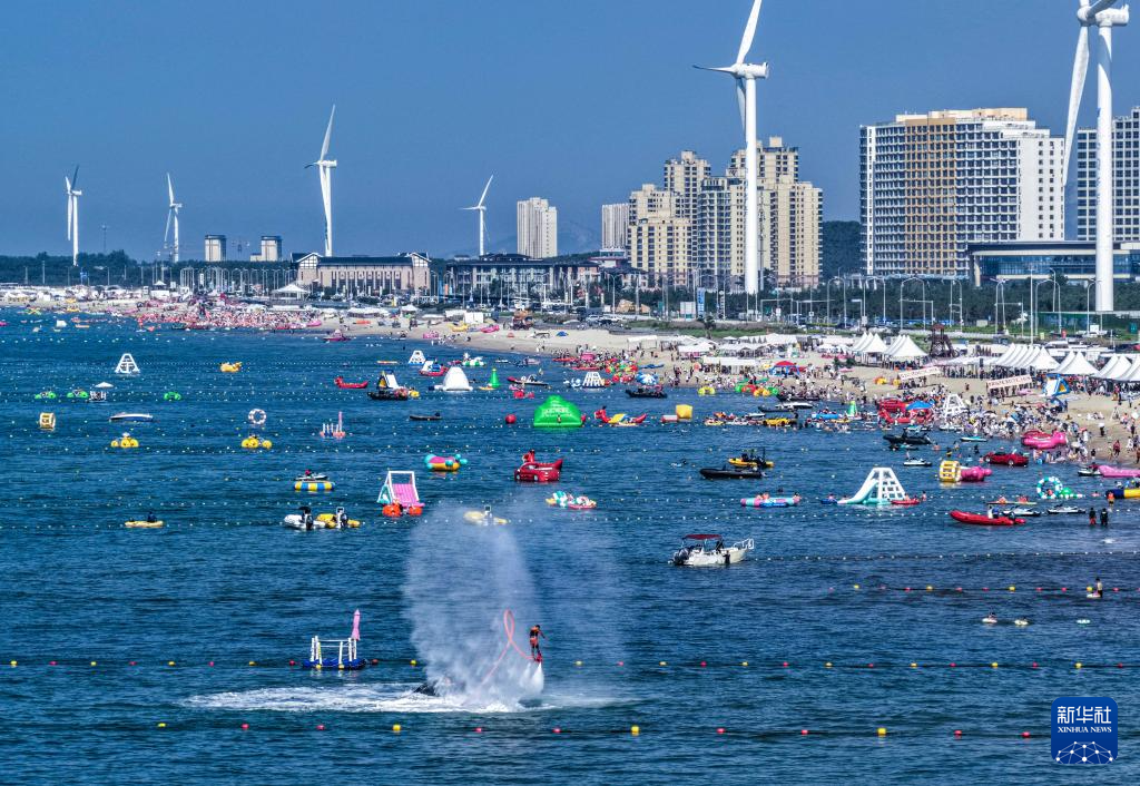 7月12日,游客在山东省荣成市那香海景区游玩(无人机照片)。