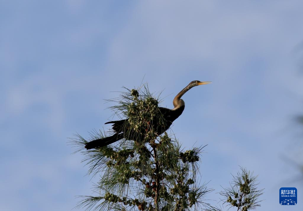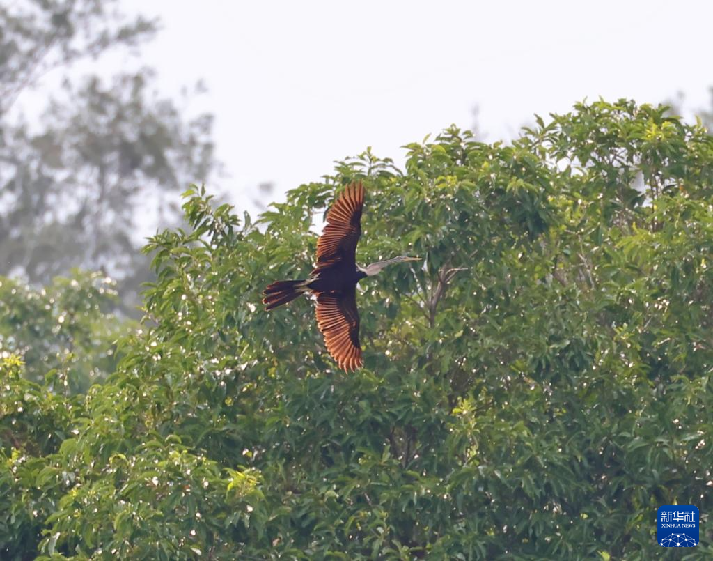 近日,海南昌江海尾国家湿地公园记录到1只被列为近危物种的黑腹蛇鹈。经海南省鸟类记录中心专家确认,这是海南省首次记录到该鸟种。据介绍,该物种已被《世界自然保护联盟濒危物种红色名录》(IUCN)列入近危物种,在我国极为罕见。
