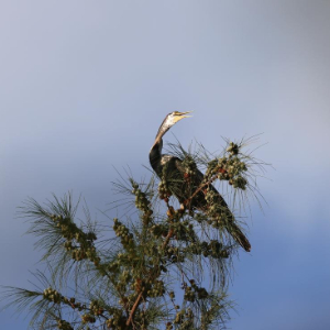 这是7月12日在海南昌江海尾国家湿地公园拍摄的黑腹蛇鹈。