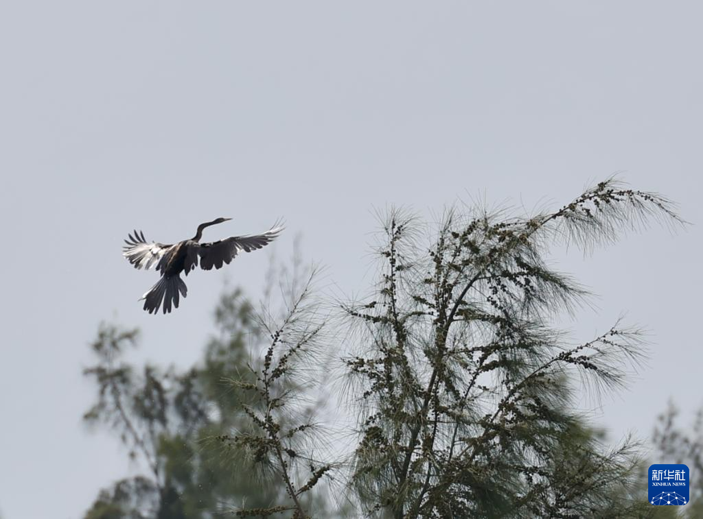 这是7月11日在海南昌江海尾国家湿地公园拍摄的黑腹蛇鹈。