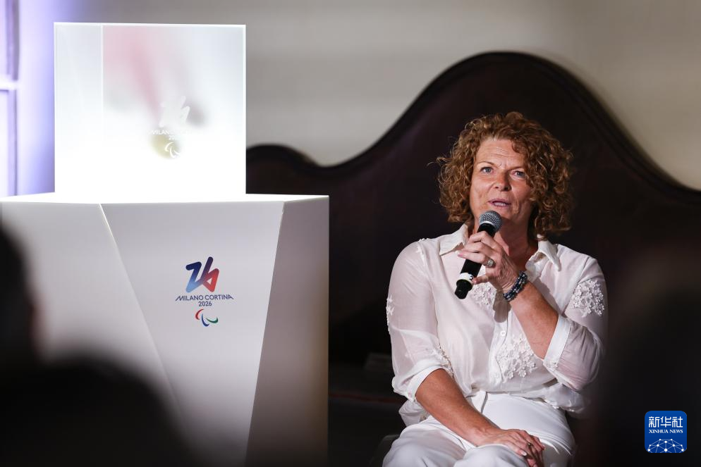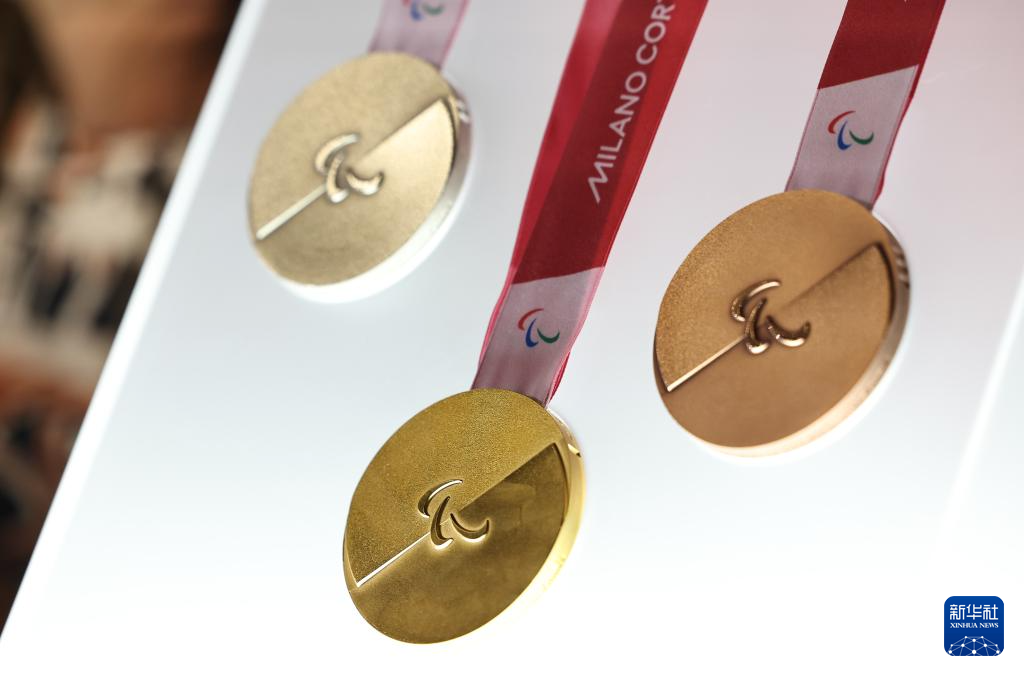 这是发布活动现场拍摄的2026年米兰-科尔蒂纳冬残奥会奖牌。