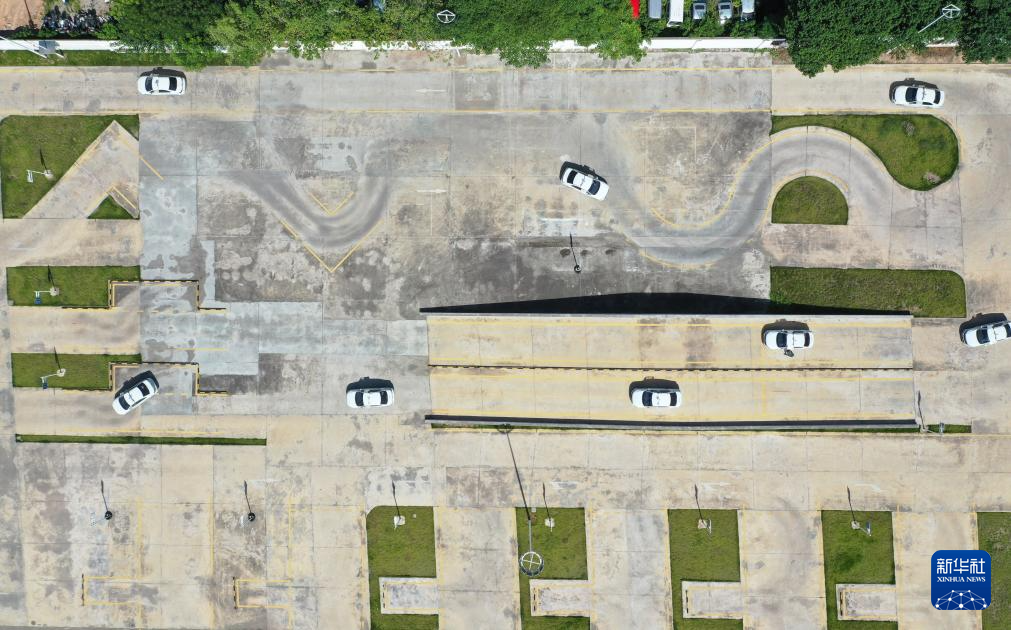 7月2日,学员们独立驾驶装有AI教学系统的AI智能教练车进行科目二的转弯、倒库等练习(无人机照片)。