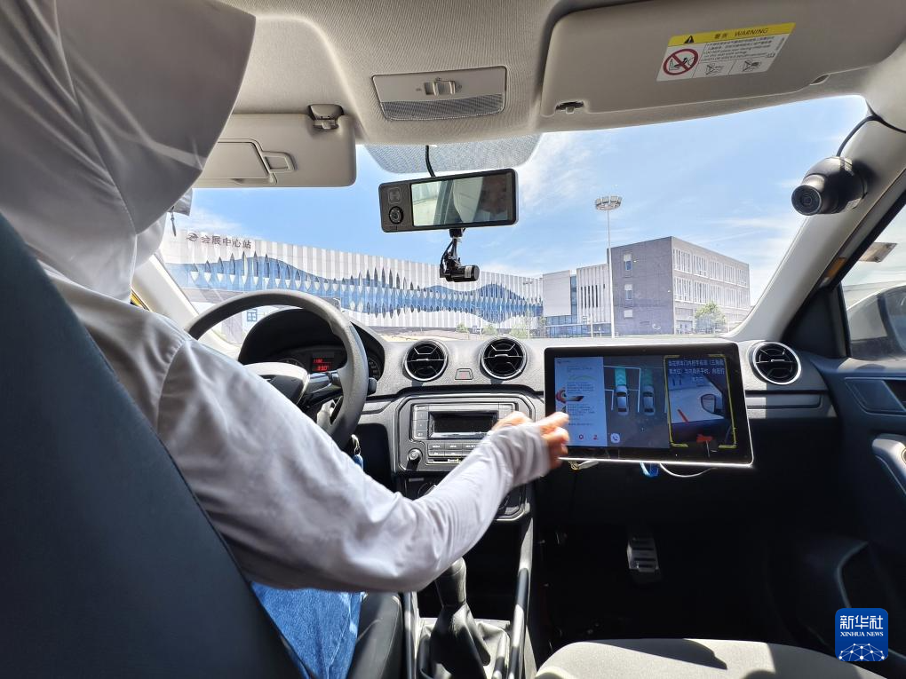 7月5日拍摄的装有车载雷达以及视觉设备的AI智能教练车。