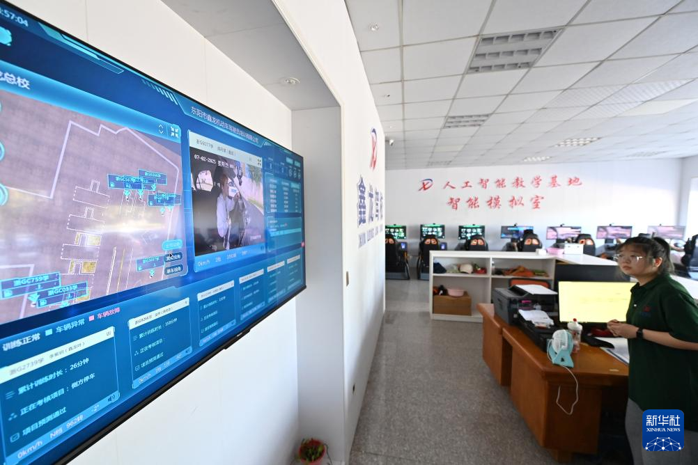 7月2日,学员在智能驾驶模拟室通过智能驾驶舱模拟机练习。
