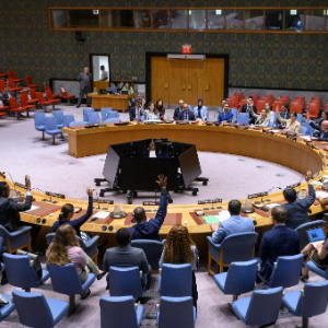 这是7月15日在位于纽约的联合国总部拍摄的安理会投票表决现场。