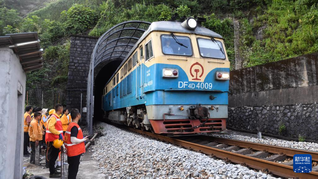 桥隧工人在隧道口立岗接车(7月16日摄)。