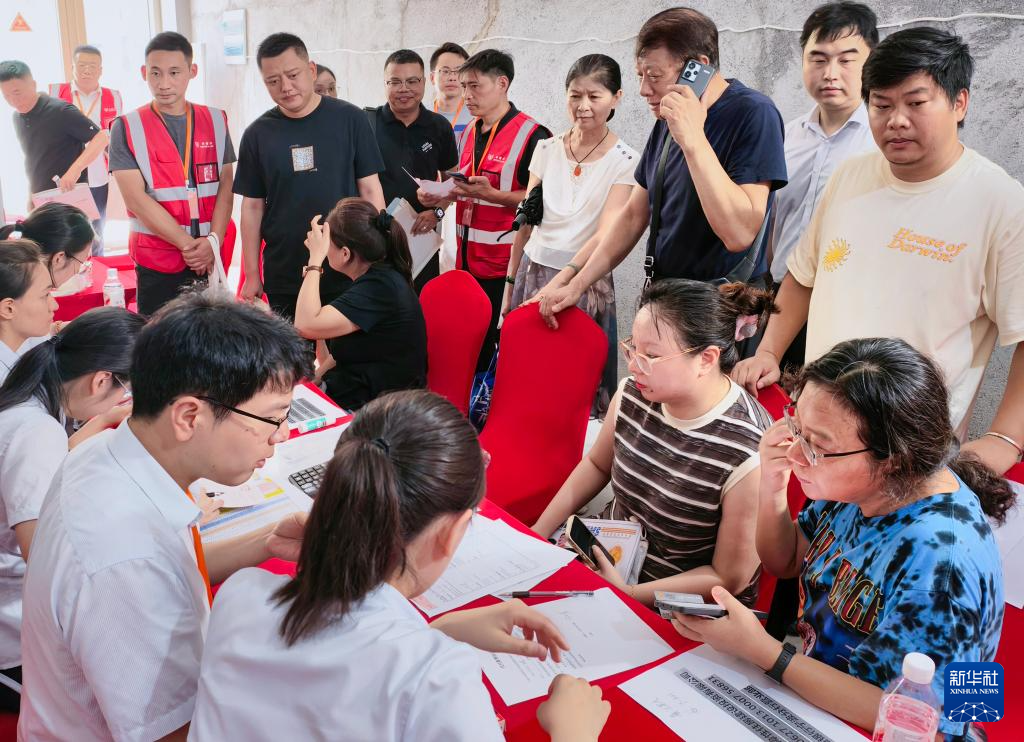 7月17日,在浙江省宁波市首个共有产权住房项目和樾湾交付现场,首批入住的市民办理相关手续。