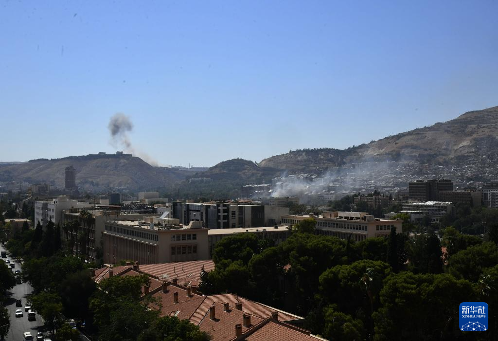 这是7月16日在叙利亚大马士革拍摄的以军袭击后升起的烟雾。