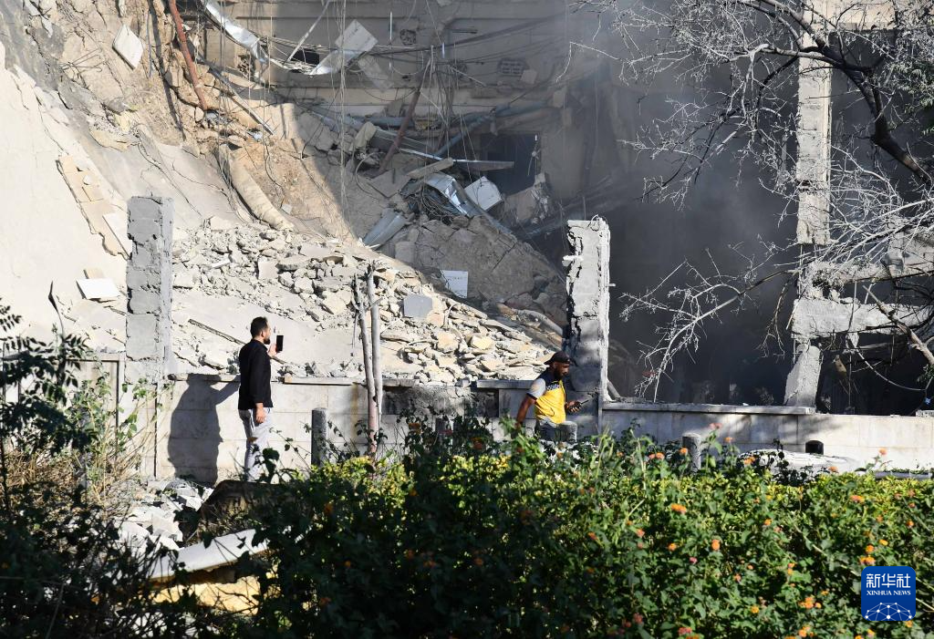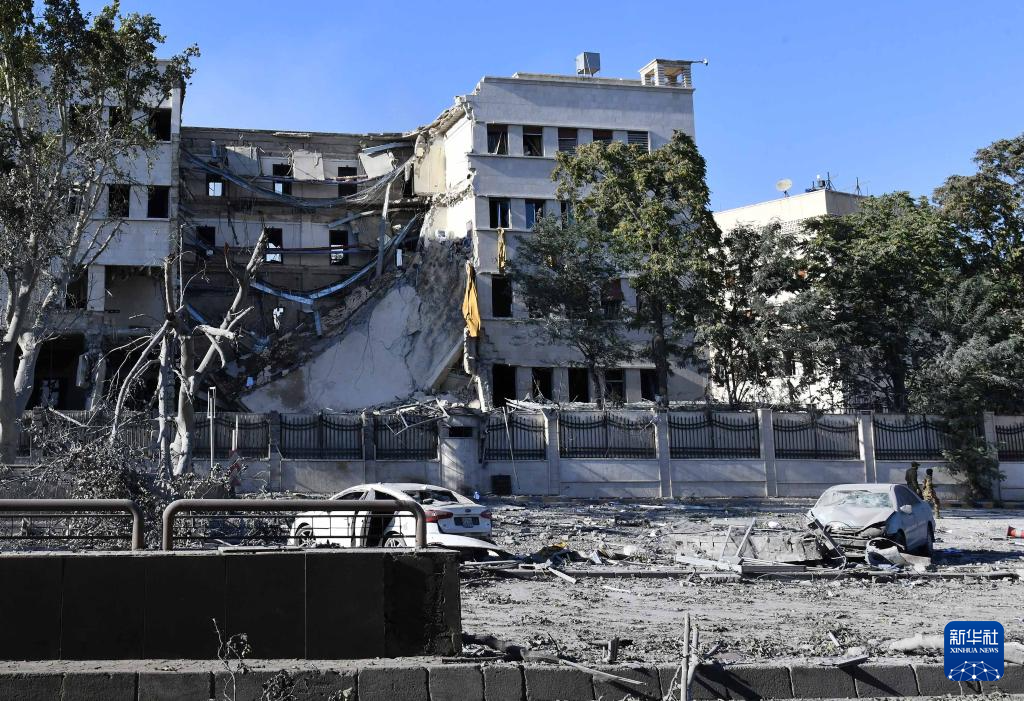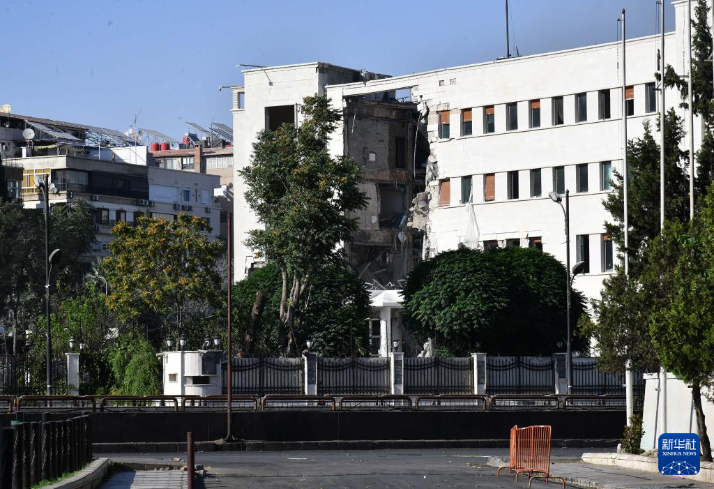这是7月16日在叙利亚首都大马士革拍摄的在以色列空袭中受损的叙“总参谋部”大楼。