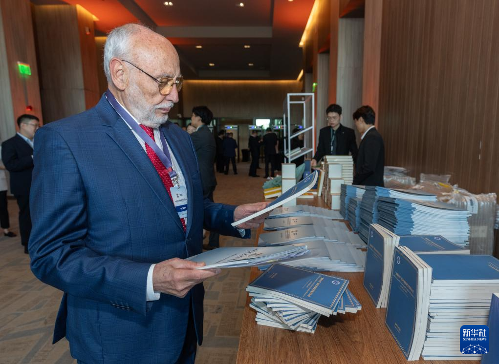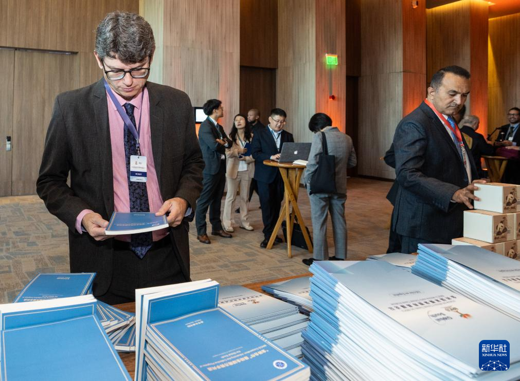 7月16日,在巴西里约热内卢举行的金砖国家媒体智库高端论坛上,与会代表翻阅《“金砖合作”推动全球南方携手共进》智库报告。