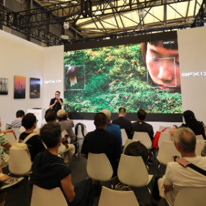 这是在展会现场举行的摄影心得交流体验活动(7月17日摄)。