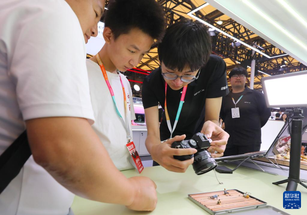 7月17日,摄影爱好者在展会现场进行动态影像拍摄体验。