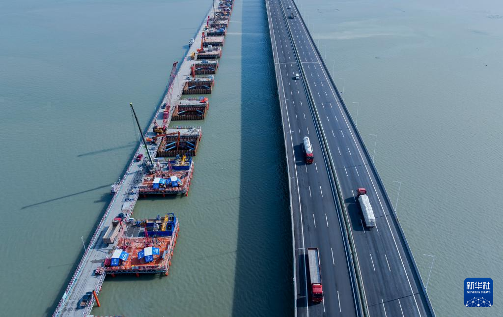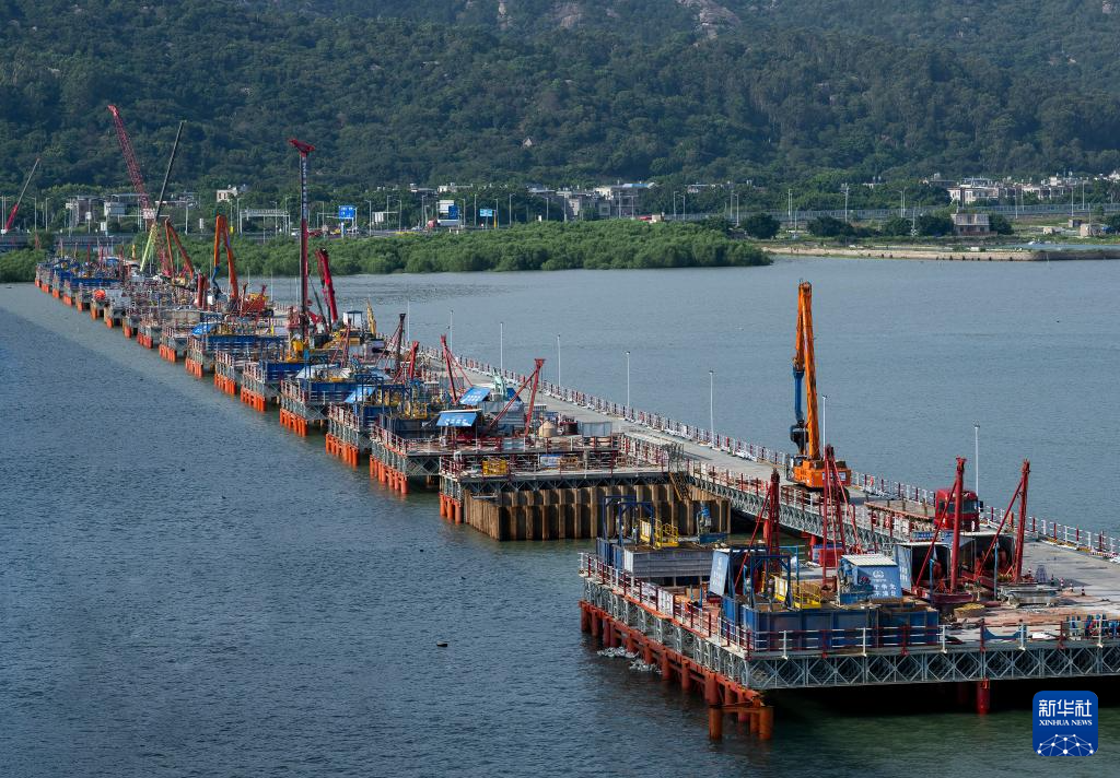 7月18日,新建漳汕高铁全线控制性工程漳江湾跨海特大桥主栈桥完工,为后续海上各工作面施工奠定基础。漳汕高铁漳江湾跨海特大桥桥梁全长5.8公里,海域部分桥梁长5公里。目前,大桥主体结构施工正在有序推进。