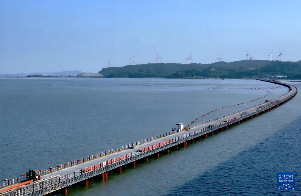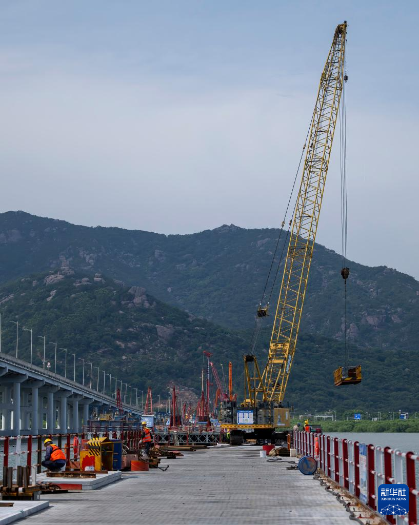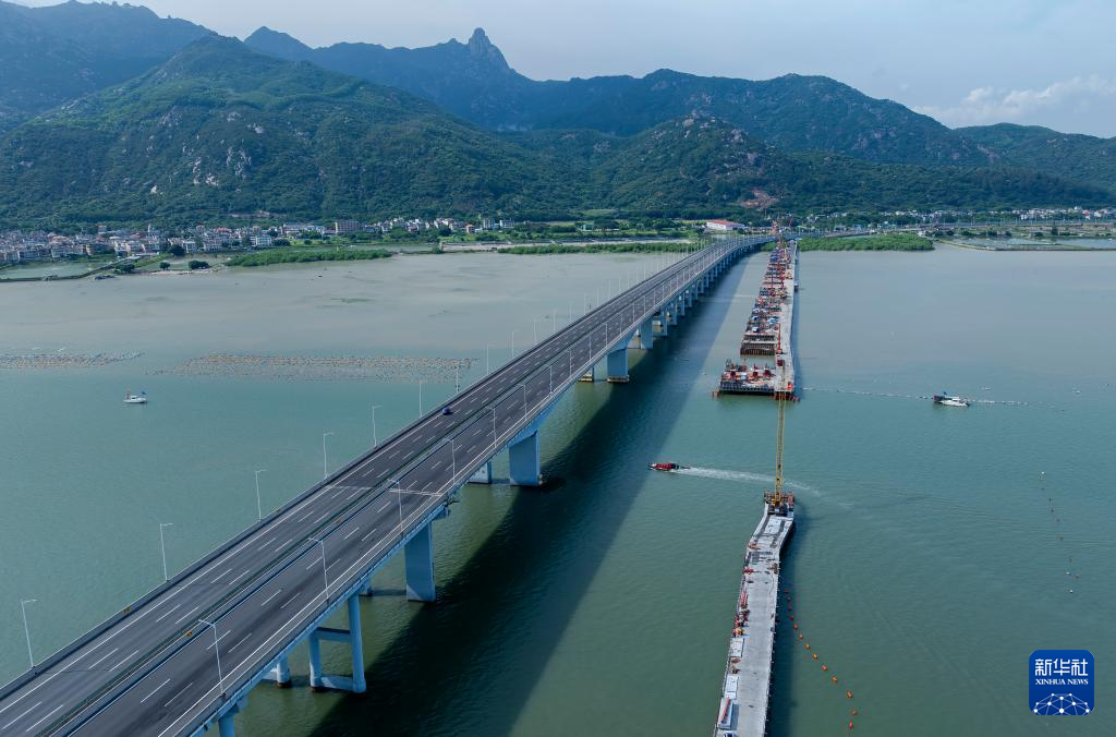 这是漳江湾跨海特大桥主栈桥(7月16日摄)。