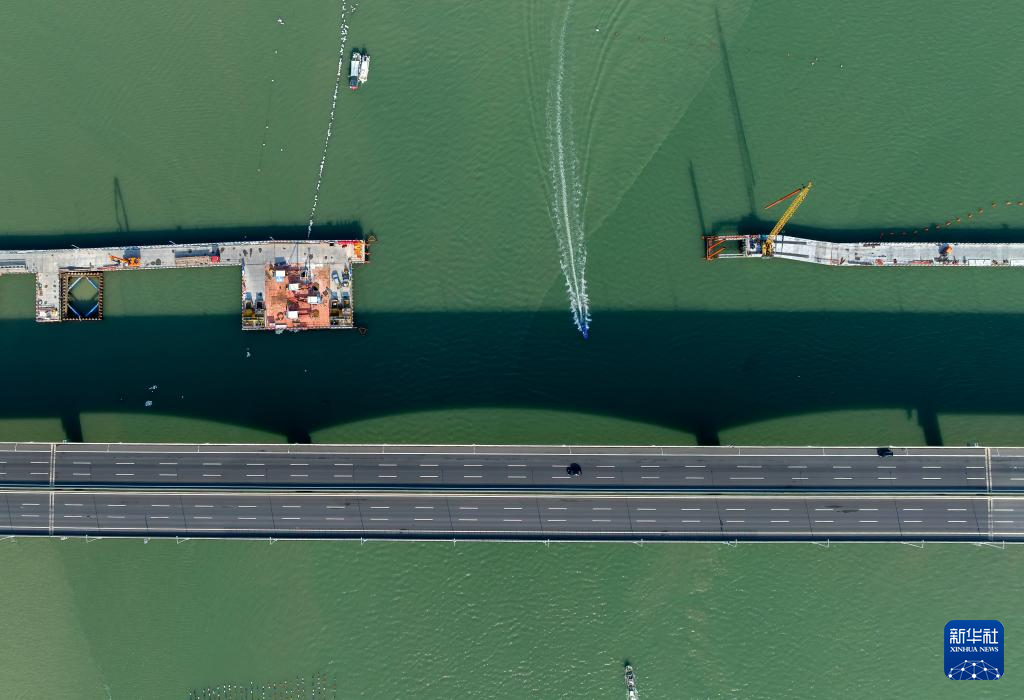 这是漳江湾跨海特大桥施工现场(7月16日摄,无人机照片)。