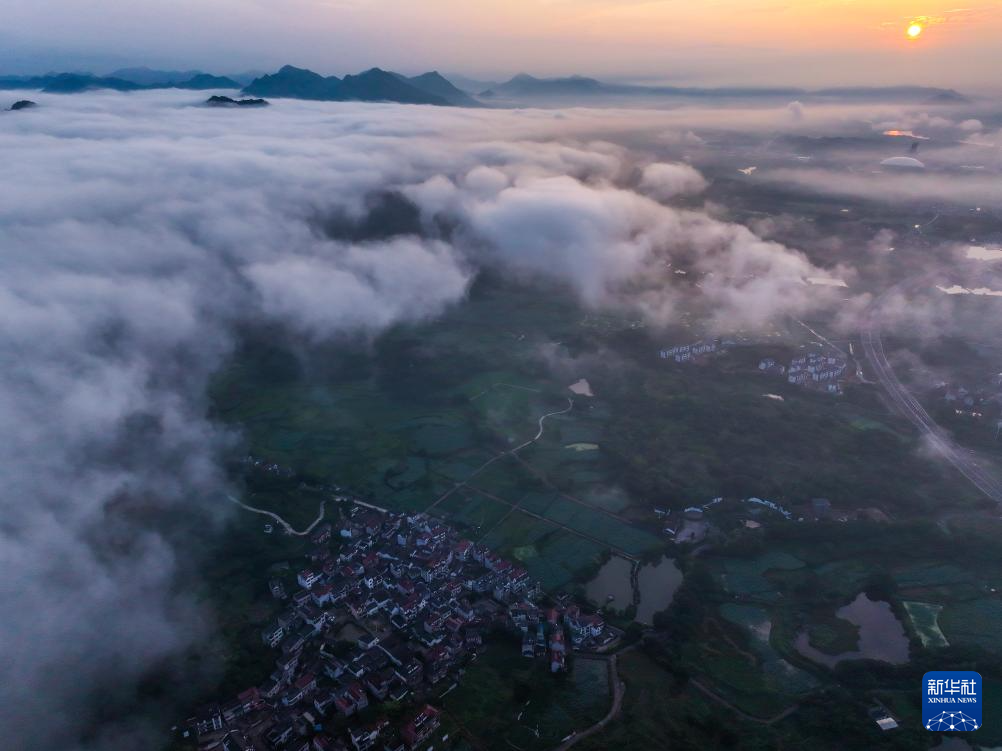 7月18日,晨曦中的建德市大慈岩镇千亩荷塘(无人机照片)。