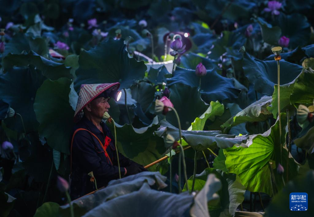 7月18日清晨,建德市大慈岩镇的果莲种植户在千亩荷塘里采摘莲蓬,经过分拣、包装后新鲜莲子当天就发往各地市场。
