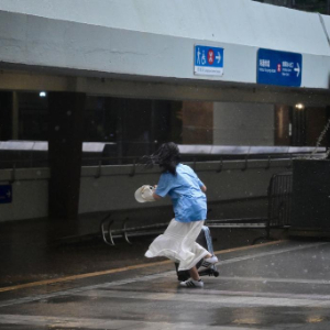7月20日,市民在风中行走。