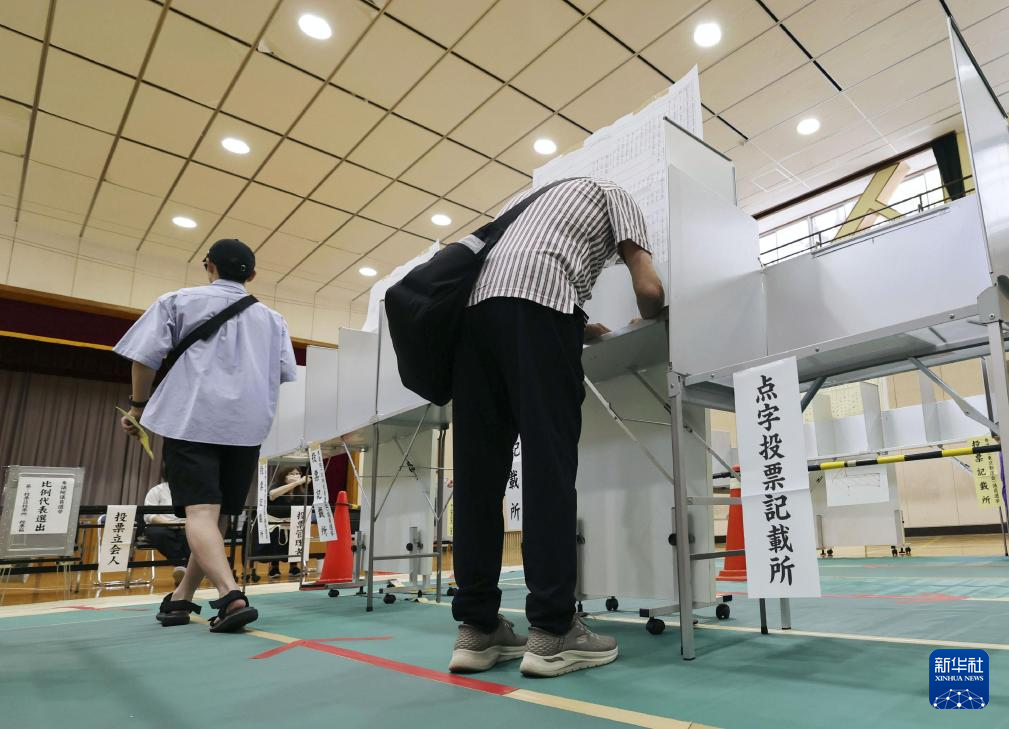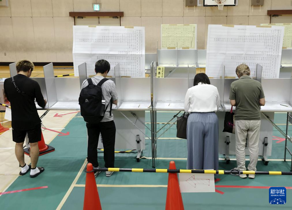 7月20日,人们在日本东京的一处投票站内参加投票。