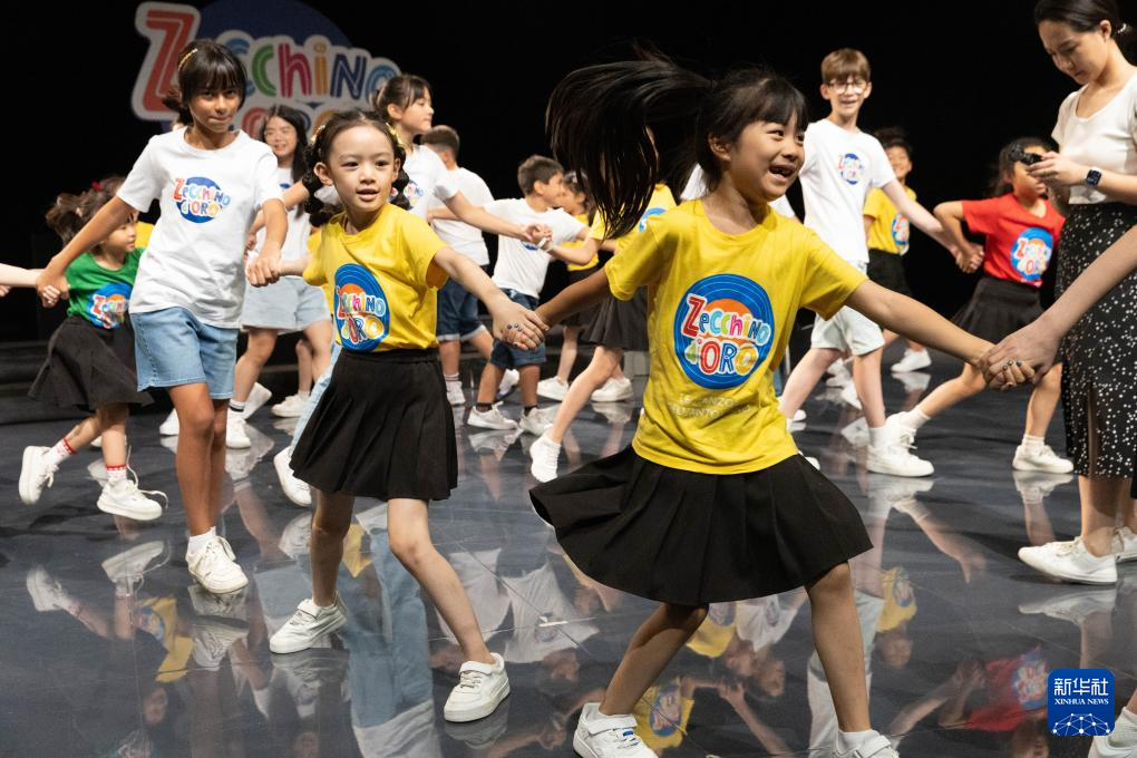 当日,来自中国上海的绣球花小合唱团与意大利安东尼亚诺小合唱团在博洛尼亚共同演唱意大利经典儿歌,展示2025夏令营的学习交流成果。