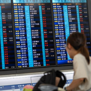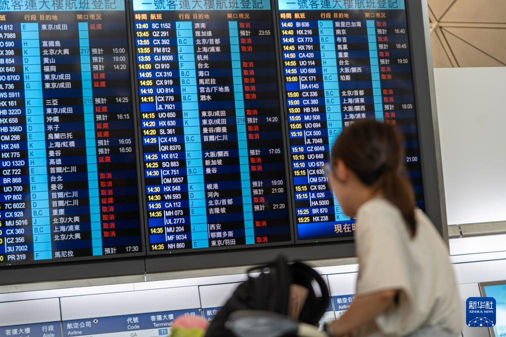 7月20日,旅客在香港国际机场查看航班信息。