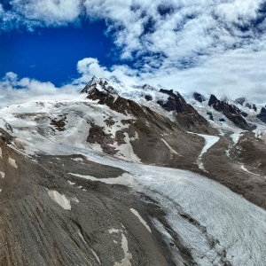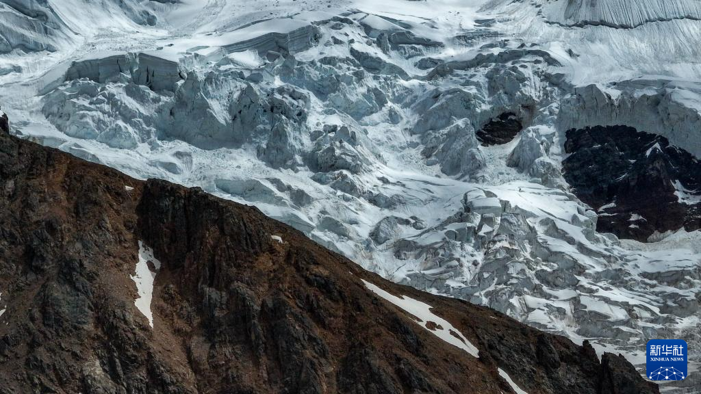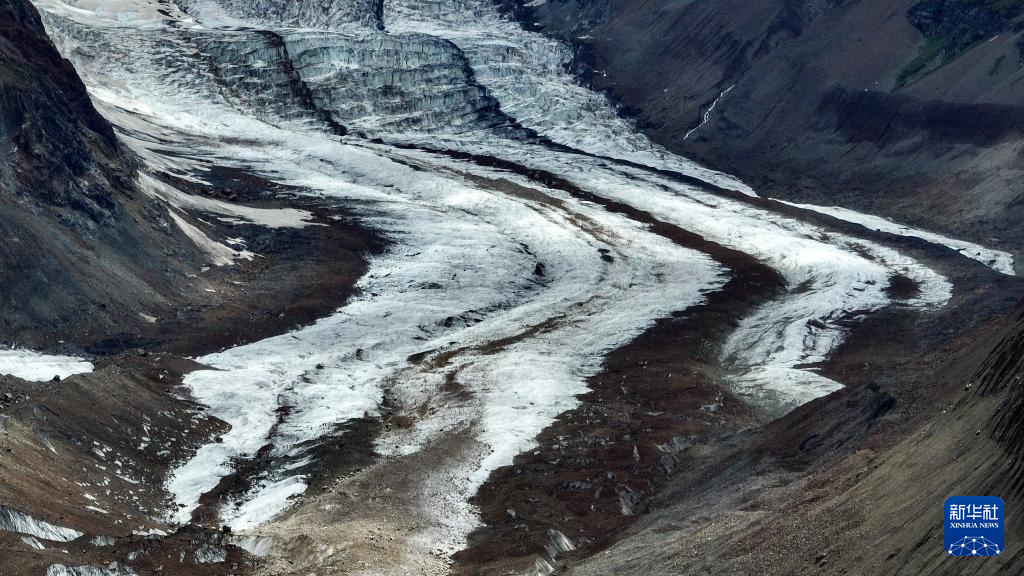 空中俯瞰祥格拉冰川(7月20日摄,无人机照片)。