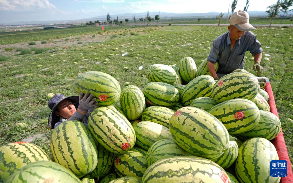 盛夏时节,宁夏中卫市沙坡头区数十万亩硒砂瓜正式开园上市,在环香山核心产区,瓜农们抢抓农时采摘硒砂瓜。得益于当地干旱气候和富硒砂壤,戈壁滩产出的硒砂瓜以“个大、瓤沙、汁多、甜度高”著称,被誉为戈壁“绿宝石”。