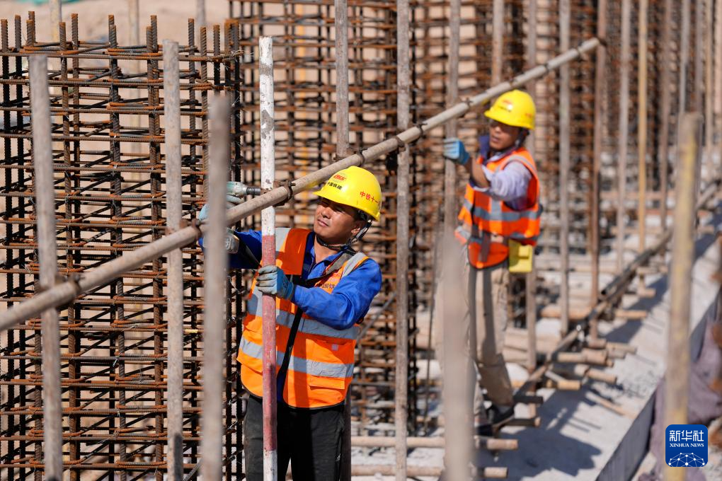 7月21日,中铁十一局工人在中卫300万千瓦光伏绿电项目3号330千伏变电站建设现场施工。