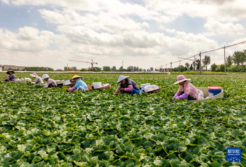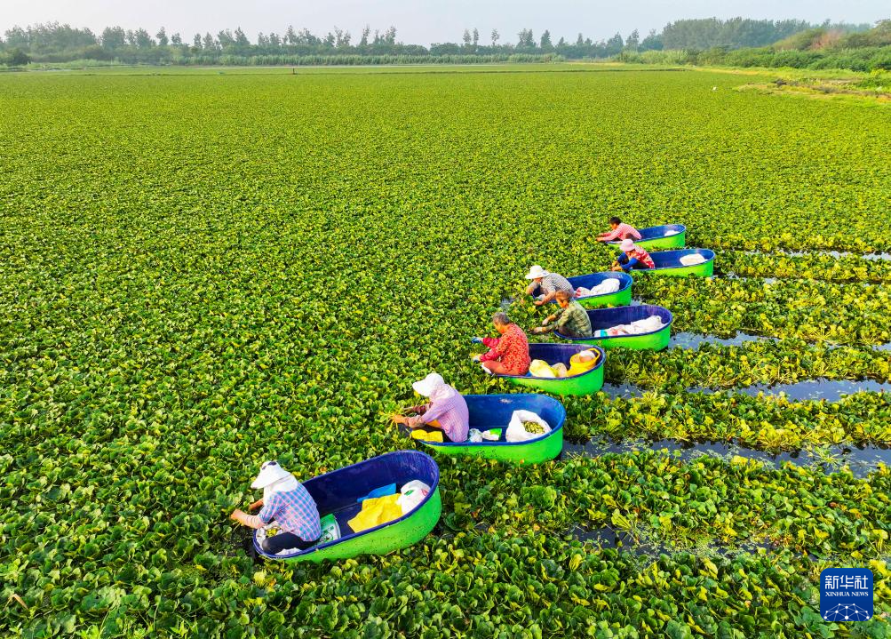 眼下,江苏多地的菱角进入采摘期,菱农忙着采摘菱角,供应市场。