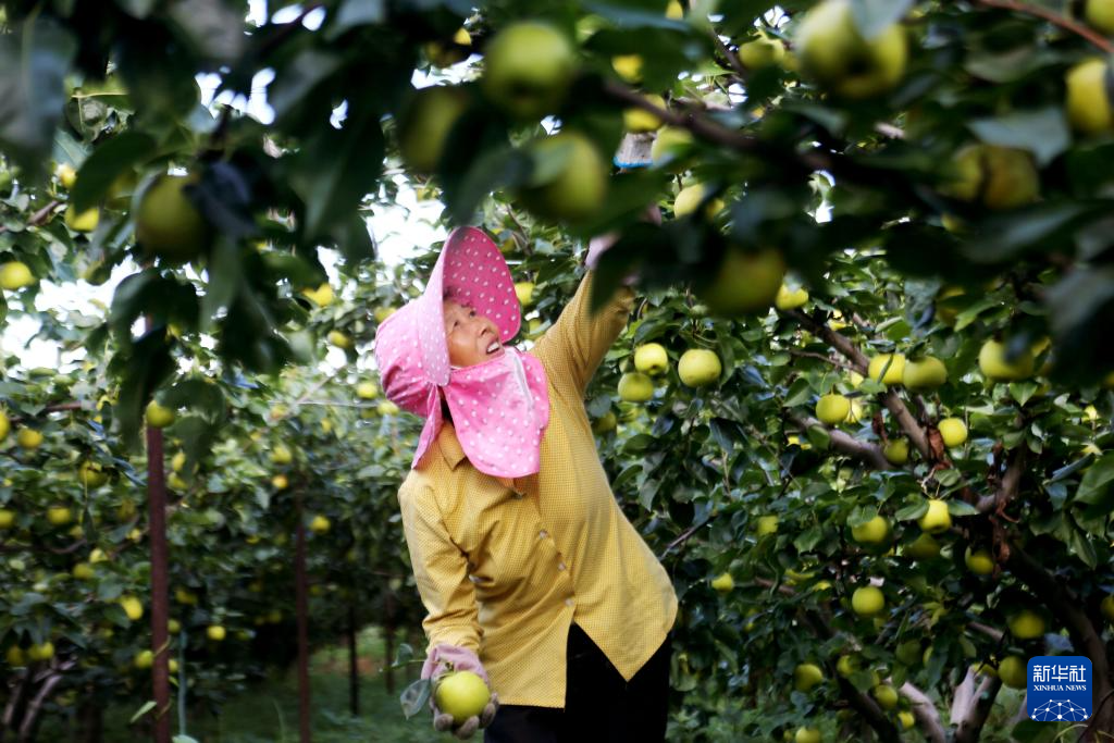 7月22日,农户在江苏省连云港市连云区云山街道李庄村摘梨。