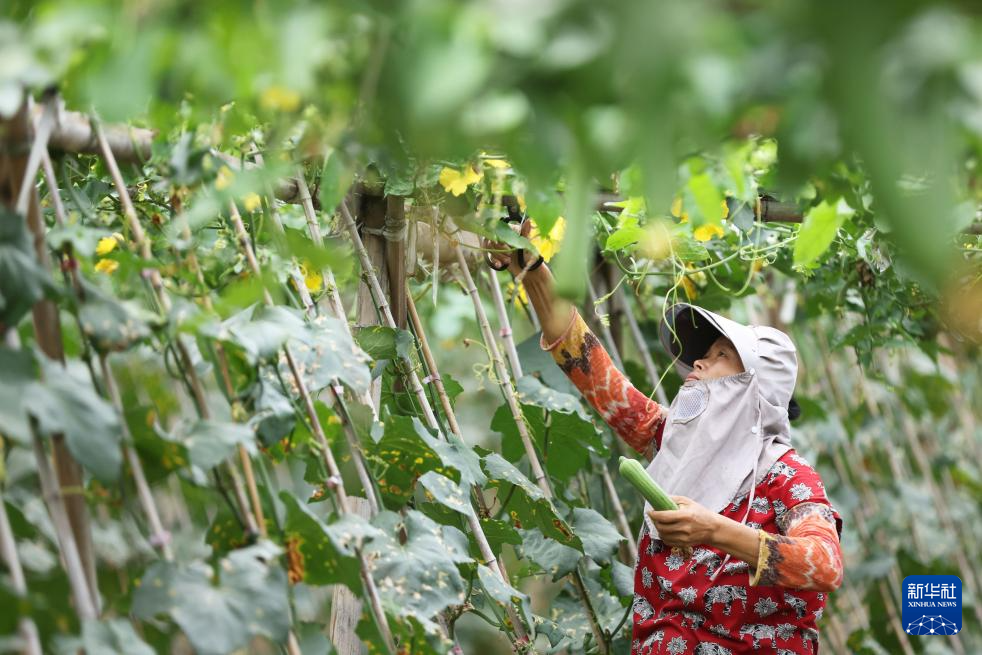 7月22日,菜农在浙江省湖州市德清县乾元镇恒星村蔬菜基地采摘丝瓜。