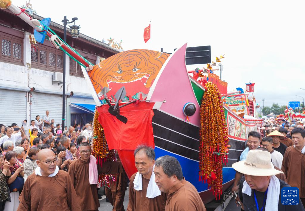 当日是大暑节气,浙江省台州市沿海群众在椒江区葭沚街道参加传统的“送大暑船”仪式。“大暑船”按三桅帆船样式建造,通身彩绘。人们抬着“大暑船”沿街巡游,随后推入江中由渔船牵引出海并点燃。“送大暑船”2021年被列入第五批国家级非物质文化遗产代表性项目名录。