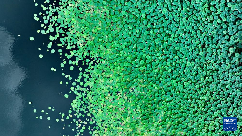 7月23日拍摄的雄安新区连片的荷花(无人机照片)。