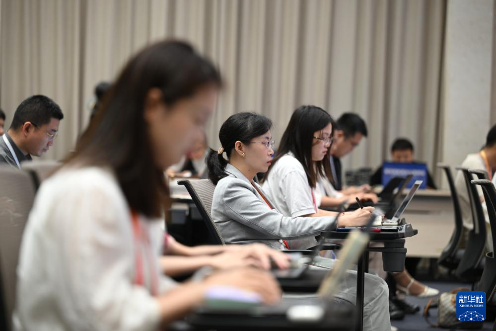 7月24日,国务院新闻办公室在北京举行“高质量完成‘十四五’规划”系列主题新闻发布会。国家医疗保障局局长章轲介绍“十四五”时期深化医保改革,服务经济社会发展有关情况,并答记者问。这是记者在发布会现场工作。