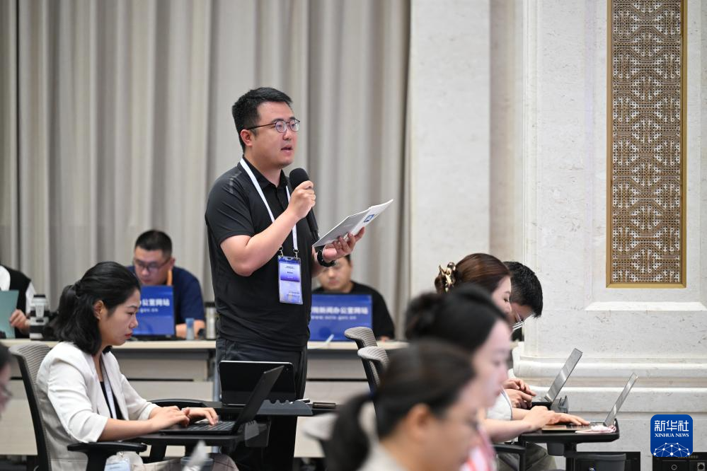 7月24日,国务院新闻办公室在北京举行“高质量完成‘十四五’规划”系列主题新闻发布会。国家医疗保障局局长章轲介绍“十四五”时期深化医保改革,服务经济社会发展有关情况,并答记者问。这是记者在发布会上举手。